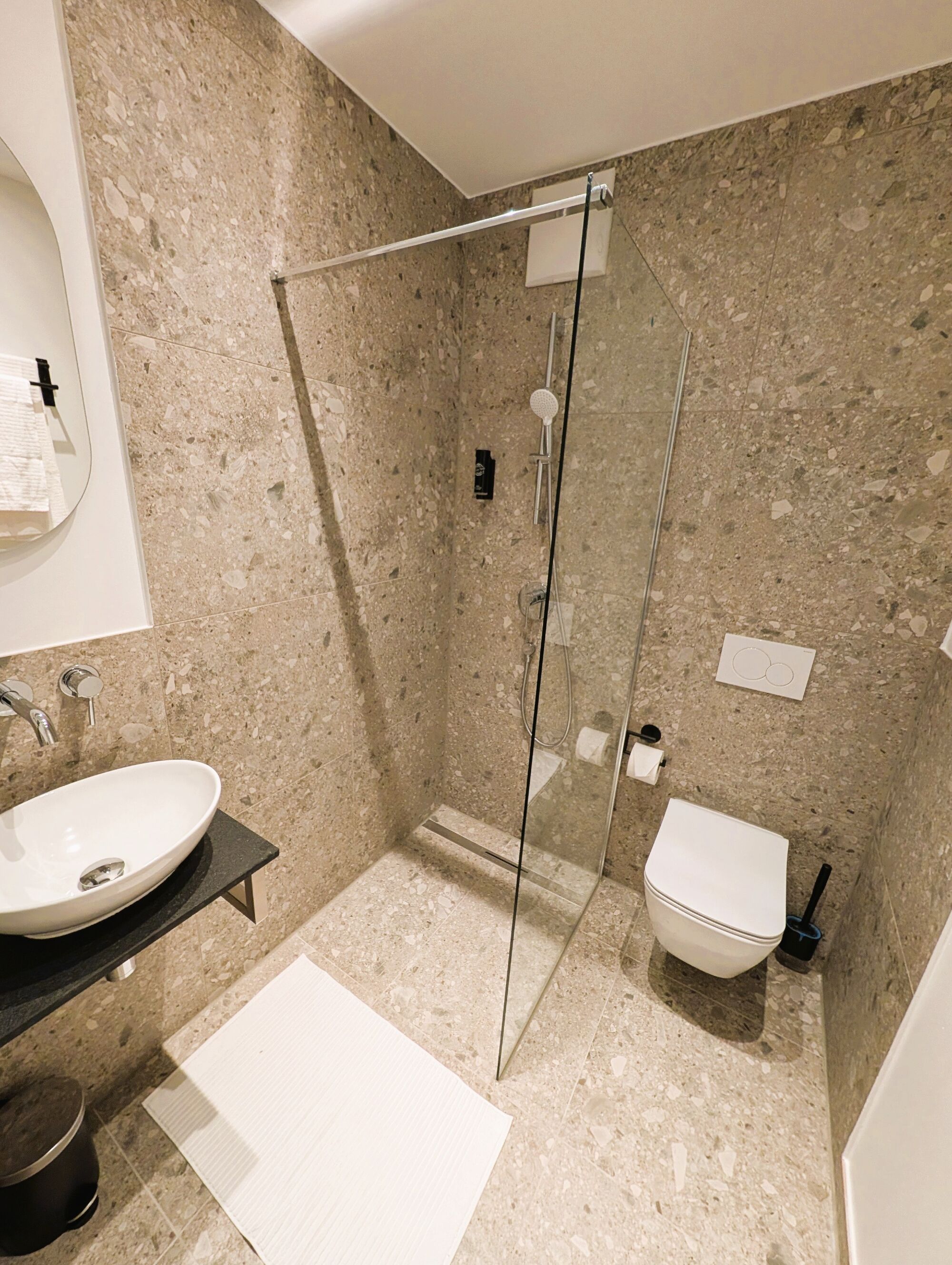 Badezimmer mit bodenebener Dusche