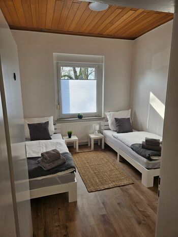 Die gemütliche Nichtraucherwohnung bietet zwei Zweibettzimmer sowie eine Küche mit einem Essbereich. Ein Badezimmer steht zur Verfügung, sowie der Zugang zu einer Waschmaschine. Die vollausgestattete Küche erleichtert das gemeinsame Kochen.